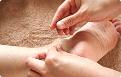 脈などを観察し、負担の少ない姿勢で手足のツボを中心に施術します。